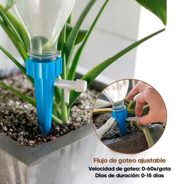 Ideal para macetas, jardines y plantas colgantes, con riego personalizado para cada una.