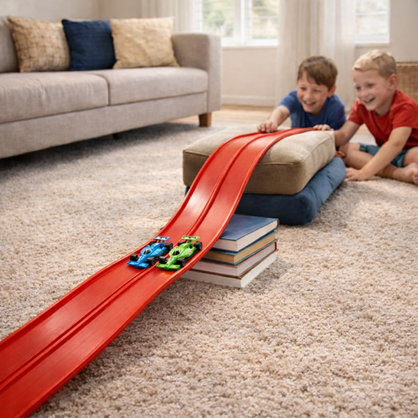 Los niños pueden dar forma a la pista utilizando objetos cotidianos para crear saltos, túneles y bucles, fomentando la imaginación y la resolución de problemas en lugar del juego repetitivo. Los mantiene concentrados durante horas sin pantallas.