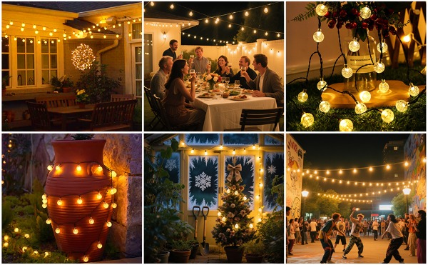 Celebra tus eventos especiales —bodas, picnics o celebraciones navideñas— con una elegancia duradera. Las luces SOLSTICE y los paneles solares son resistentes al agua con estándar IP44, por lo que puedes usarlas tanto en interiores como en exteriores sin preocuparte por los daños causados por el clima.
