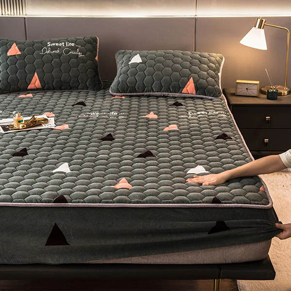 🌙 ¡Disfruta de un sueño reparador con nuestro juego de cama VELVETLUX! Suave y agradable al tacto, este set de diseño moderno incluye una sábana y dos fundas de almohada. Disponible en verde grisáceo con triángulos o rosa con corazones. 🛌✨