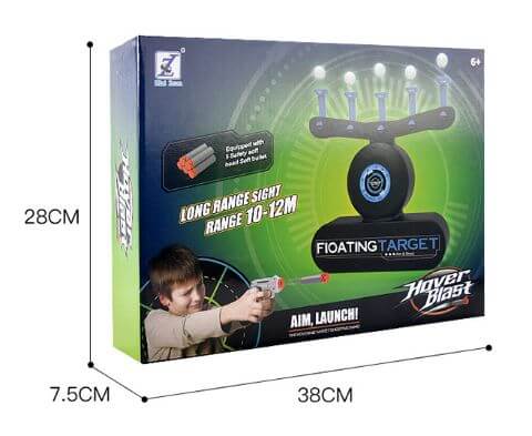 Es fácil de montar: ¡coloque las cinco pelotas en los pilares, encienda el juego y las pelotas quedarán suspendidas en el aire! Luego, compita para derribar las bolas tan rápido como pueda con las pistolas de dardos de espuma incluidas.