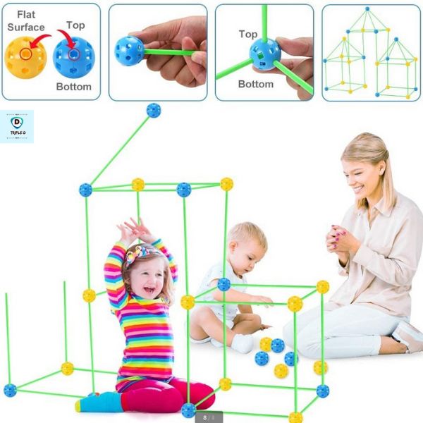 ¡Fomenta la creatividad de tus hijos con el kit de construcción FORTKID! Construye una fortaleza mágica donde tus pequeños podrán explorar, jugar y soñar. ¡Con 87 unidades de palos y juntas de plástico resistente, podrán crear infinitas estructuras de castillos o construir una gran fortaleza y gobernar como auténticos reyes y reinas!