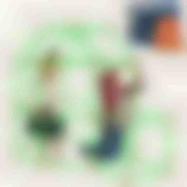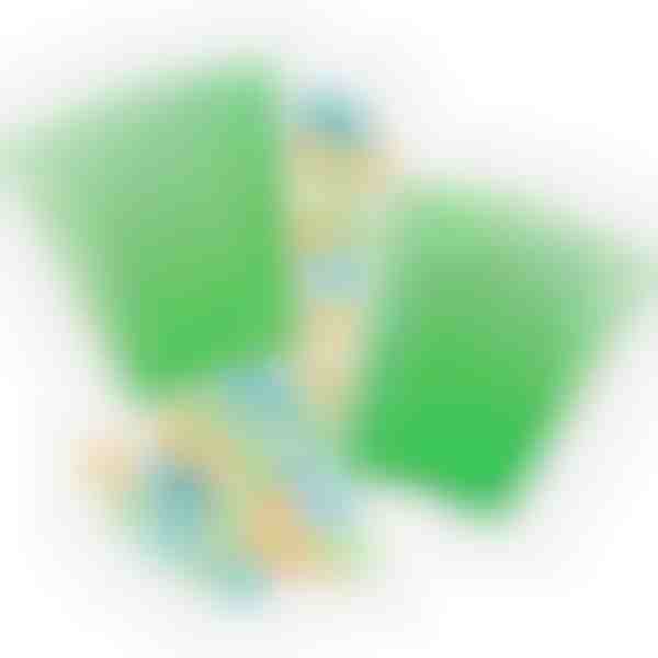 Color: Bola: roja, amarilla, verde, azul / Tubo: verde / Tela: verde