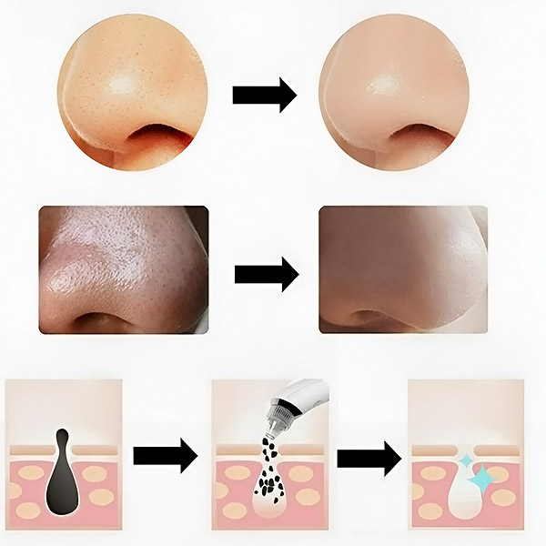 No sólo limpia los poros, sino que también refresca la piel, estimula la circulación y suaviza las líneas de expresión. La suave succión masajea los músculos faciales, dejando la piel fresca y resplandeciente después de cada uso.