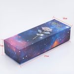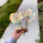Cada rosa está elaborada con un recubrimiento iridiscente y holográfico que brilla hermosamente a la luz, creando un destello galáctico simplemente hipnotizante.